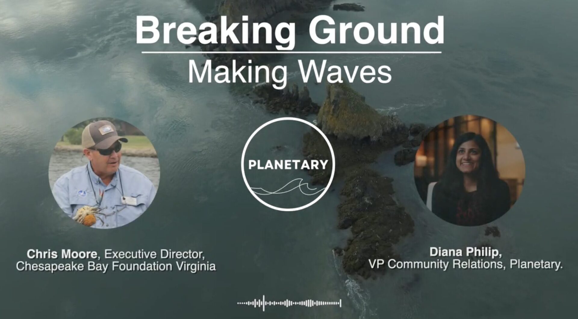 In this episode of Breaking Ground, Making Waves, Planetary’s speaker series, Diana Philip speaks with Chris Moore, Virginia Executive Director of the Chesapeake Bay Foundation (CBF), about what it takes to restore and protect one of the most important watersheds in the United States. Chris reflects on his remarkable career spanning science, fisheries, oyster work, restoration, and policy at CBF, while also offering a window into the breadth of the Foundation’s work across the Chesapeake Bay watershed.